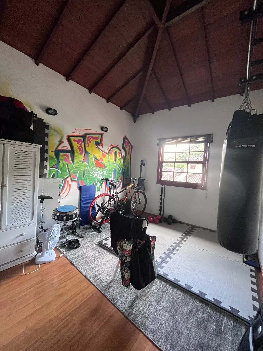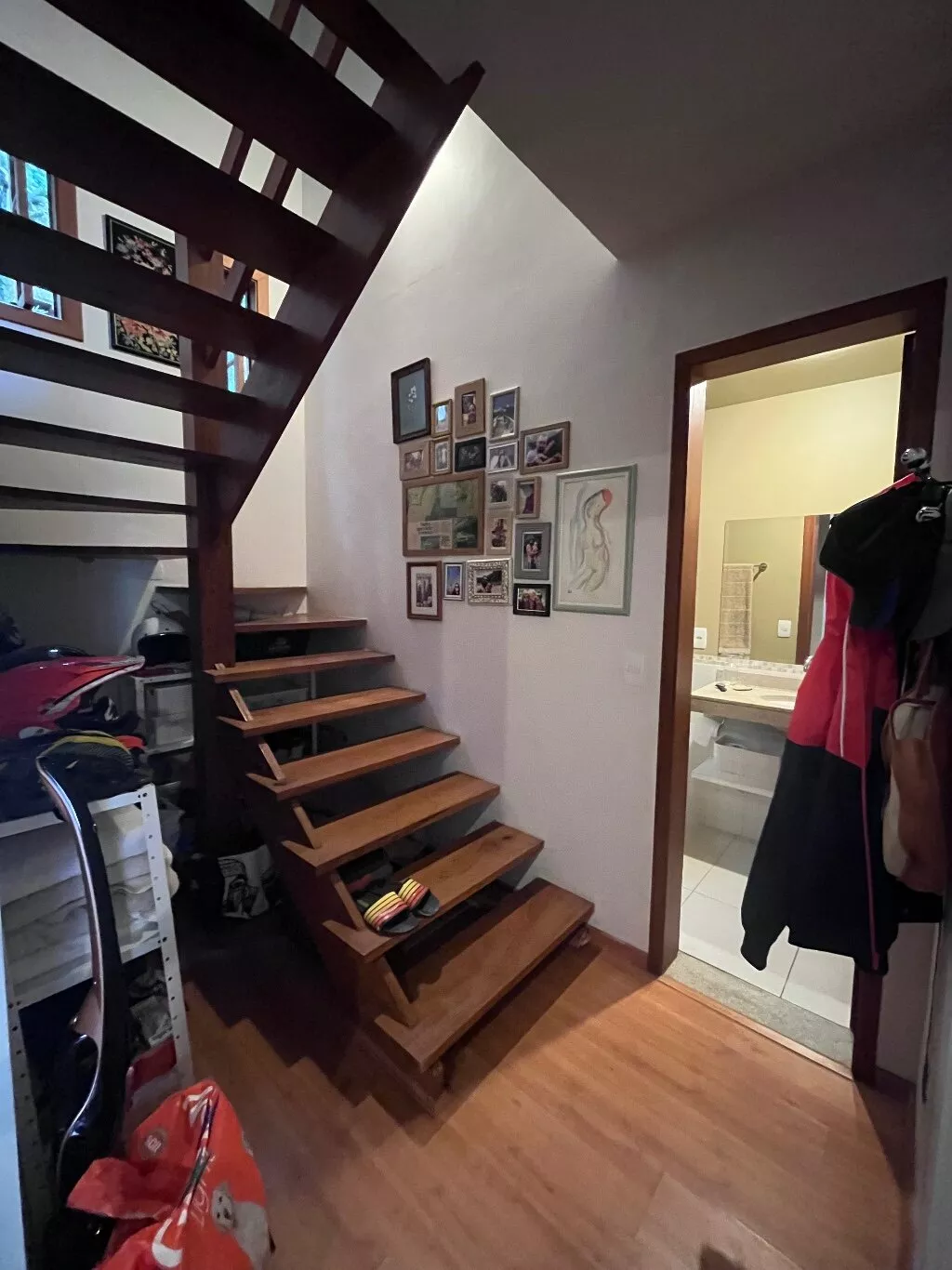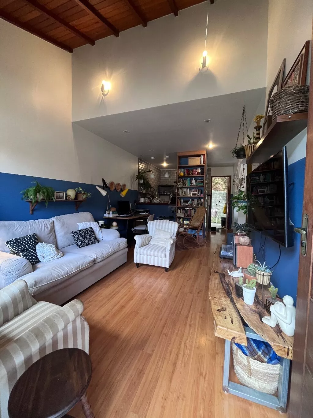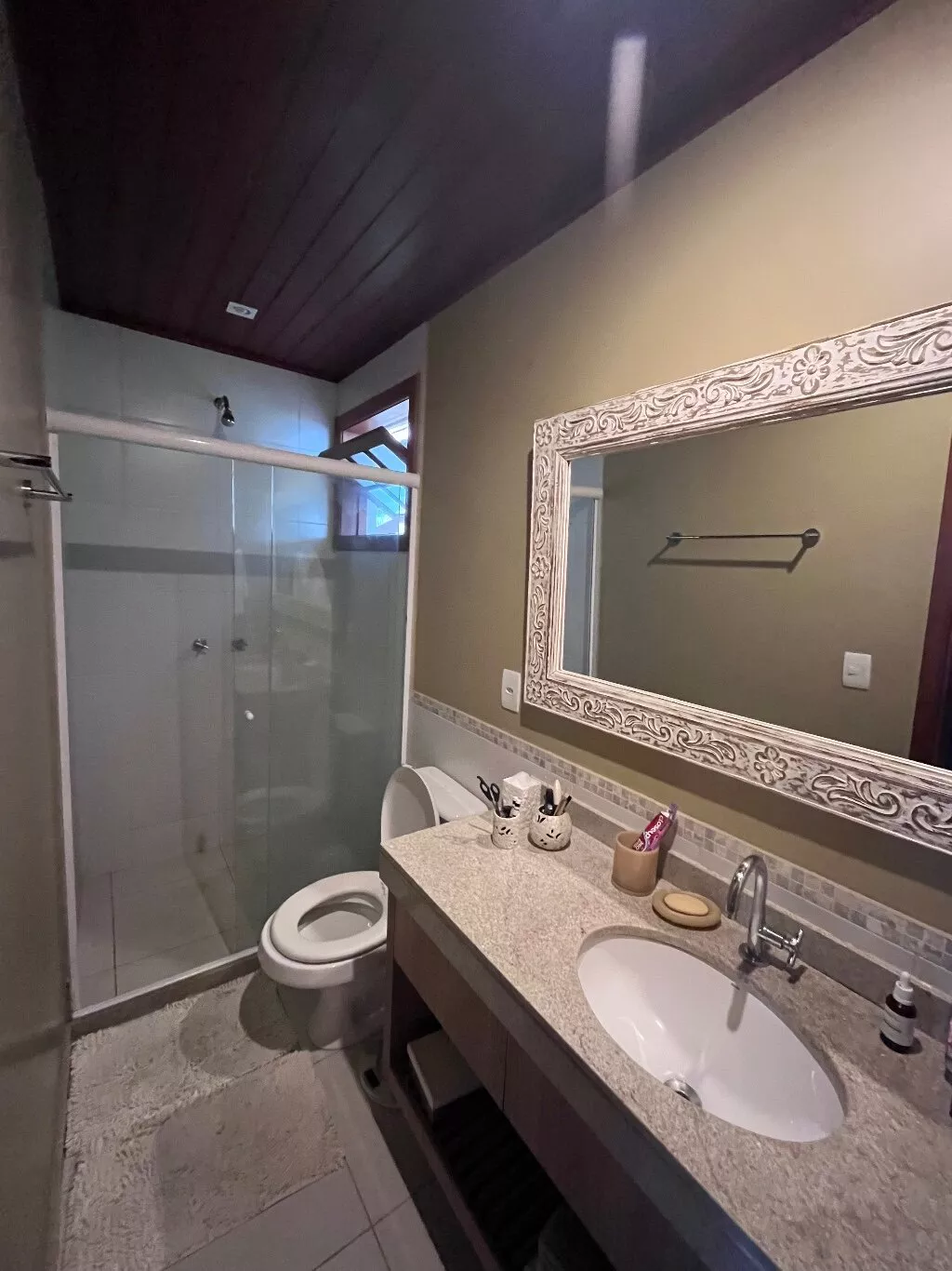 Possui 3 quartos, sendo 2 suites no segundo andar e 1 quarto reversível com banheiro comum; cozinha americana, adega e área de serviço fechada. A área externa da casa conta com um belo jardim e área gourmet (churrasqueira e forno a lenha).