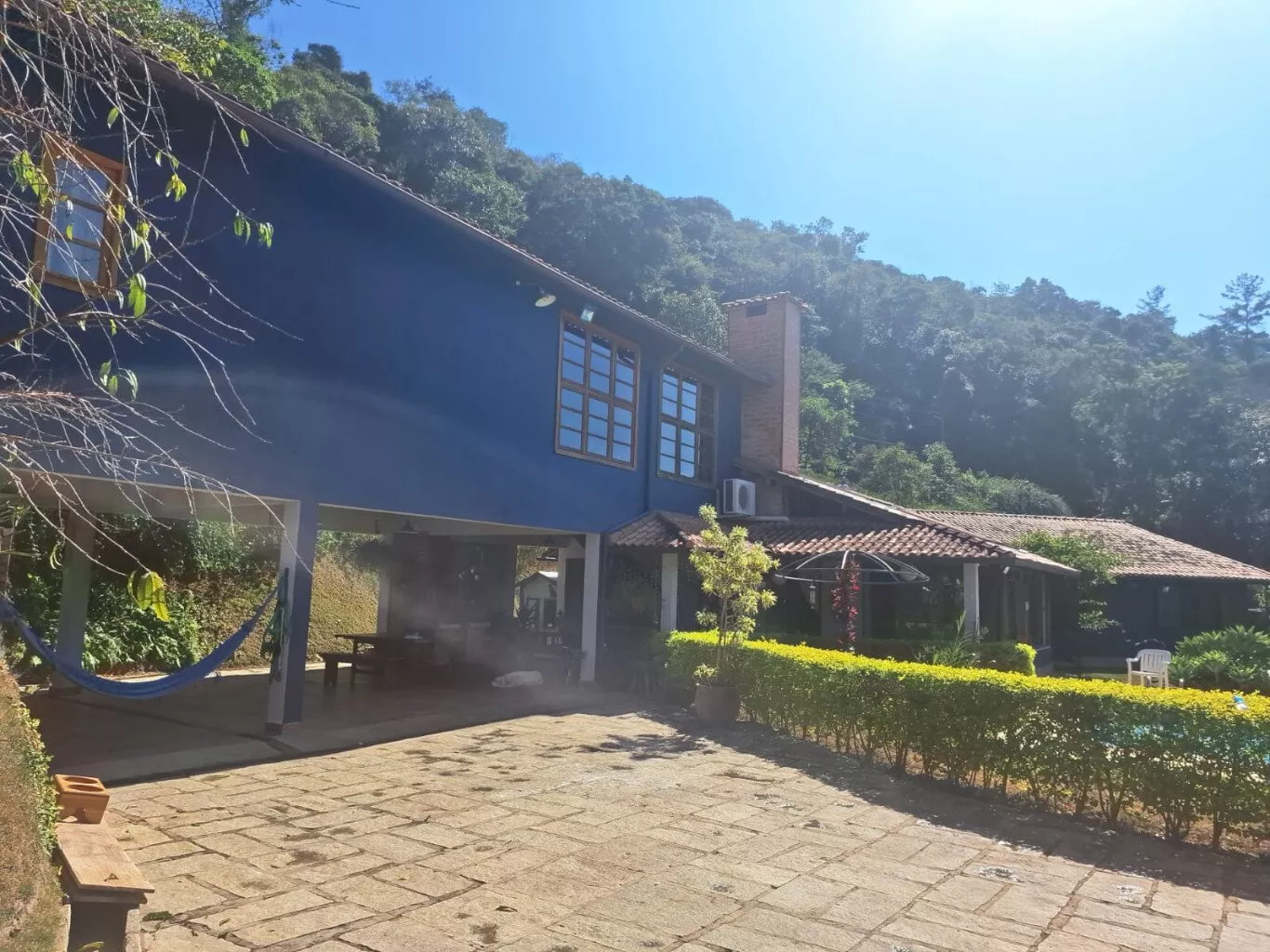 - Suíte para caseiros e dois cômodos para guardar equipamentos de jardim;