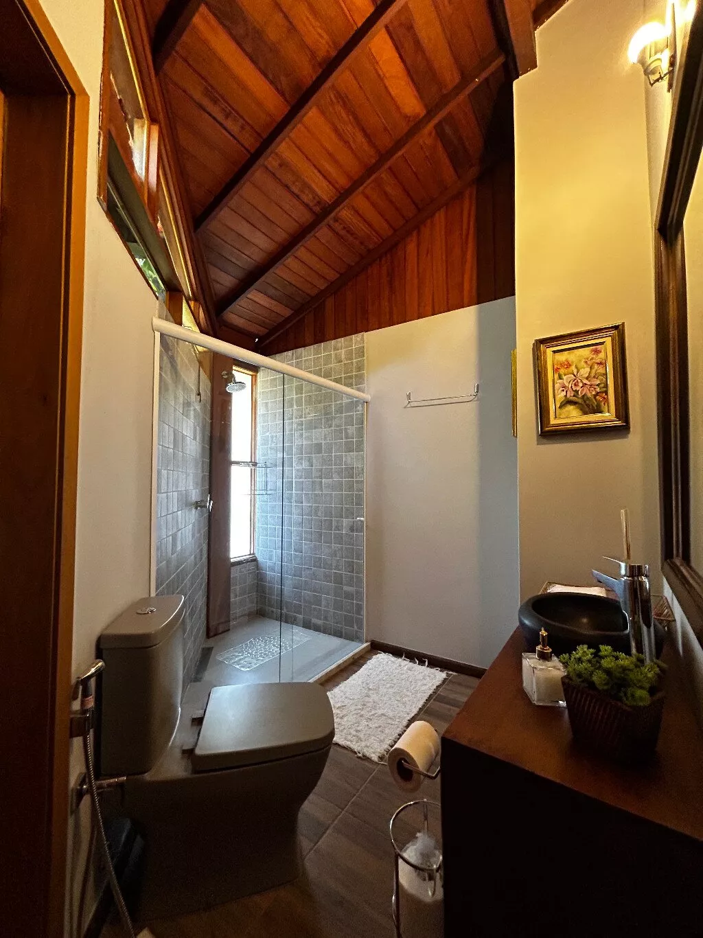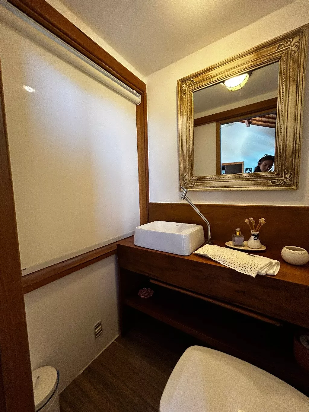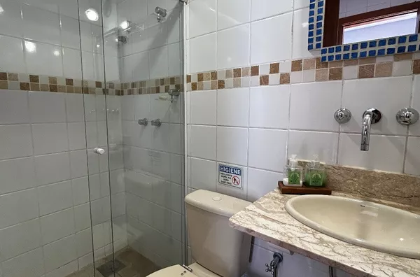 - Banheiro canadense, com acesso conveniente tanto para a sala de jantar quanto para um dos quartos;