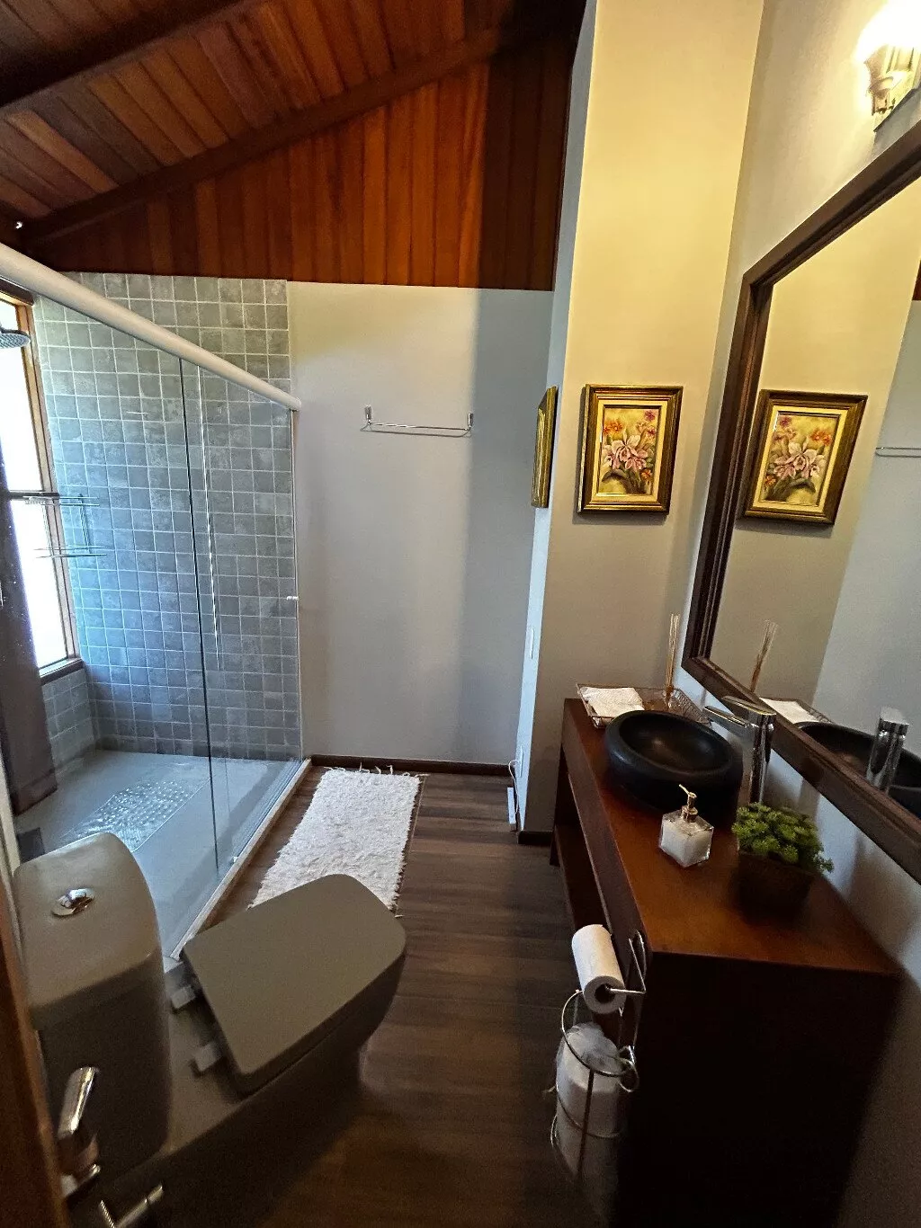- Corredor que leva a 4 quartos, sendo 3 suítes e 1 com closet, além de um banheiro adicional ao lado do quarto que não é suíte;