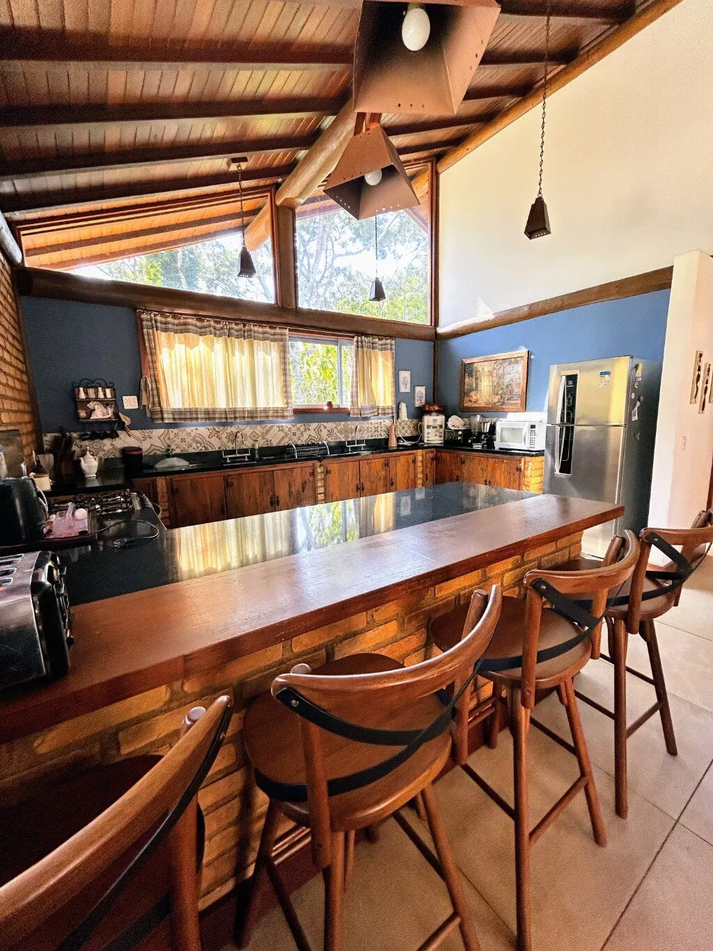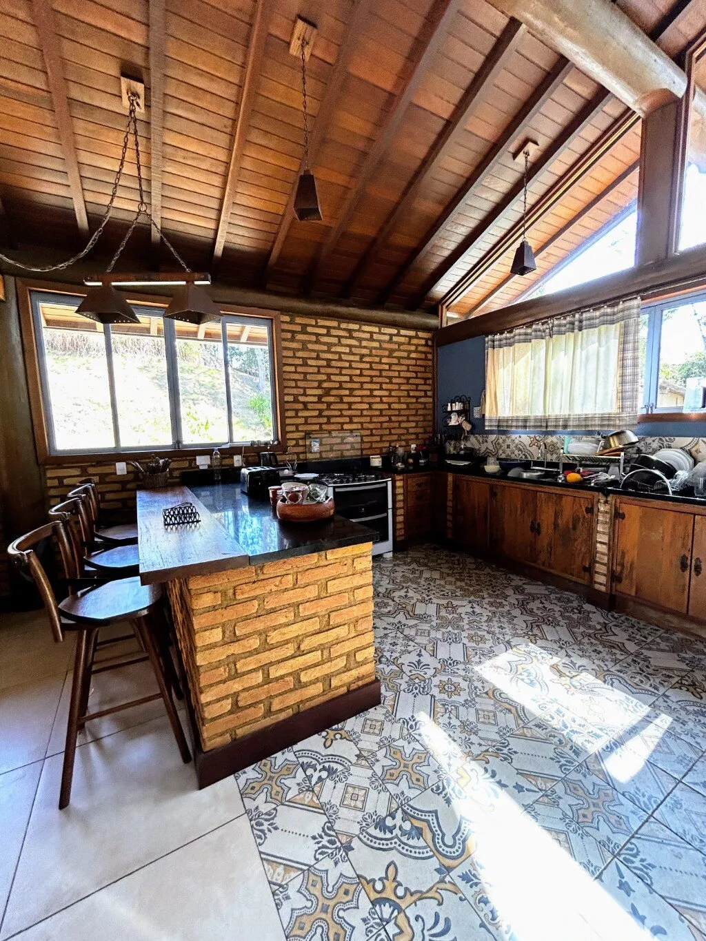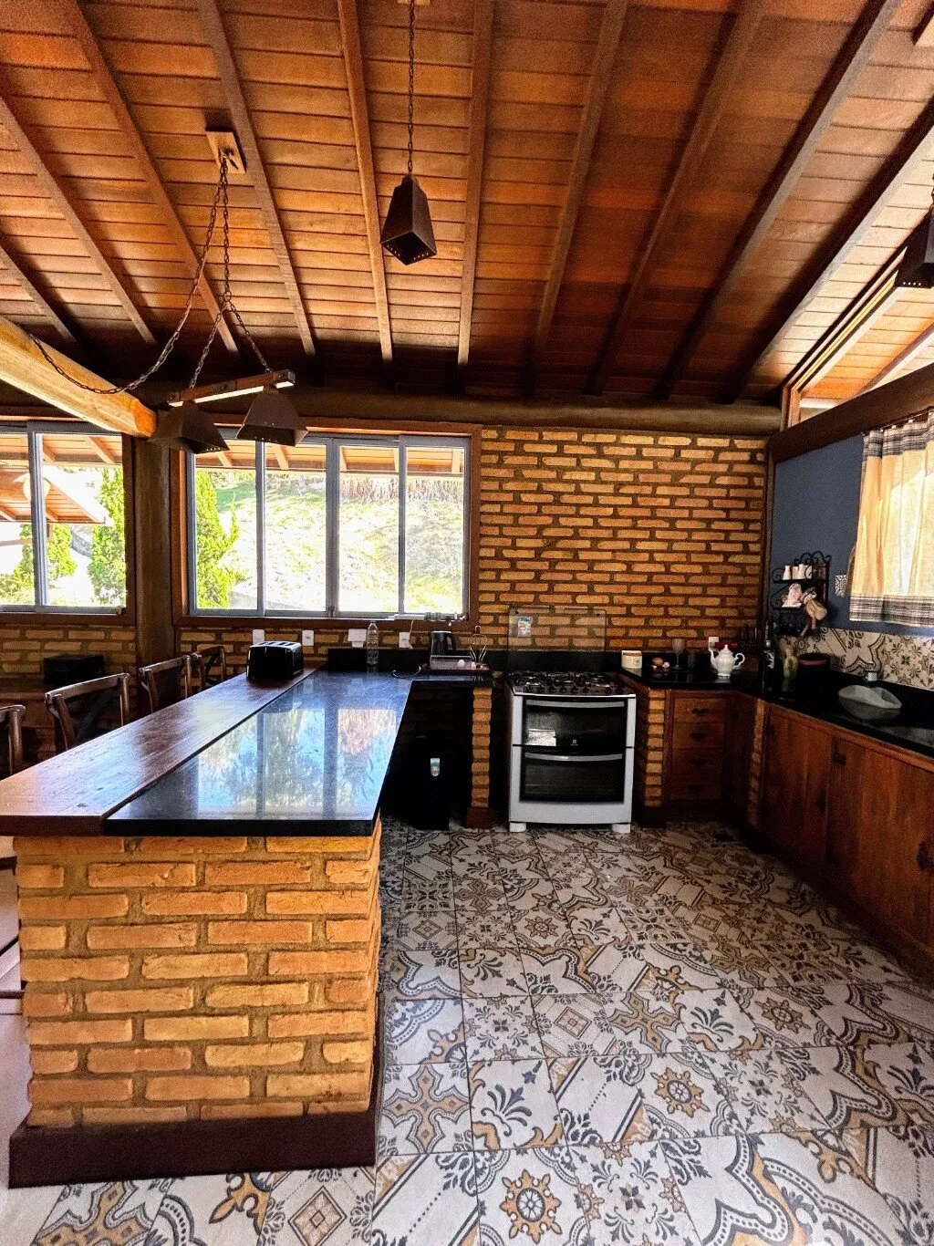 - Cozinha rústica bem equipada com despensa.