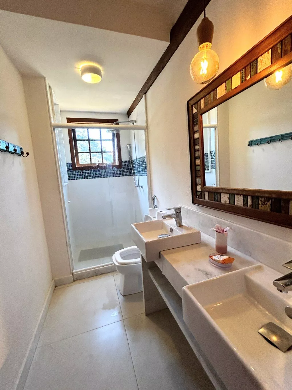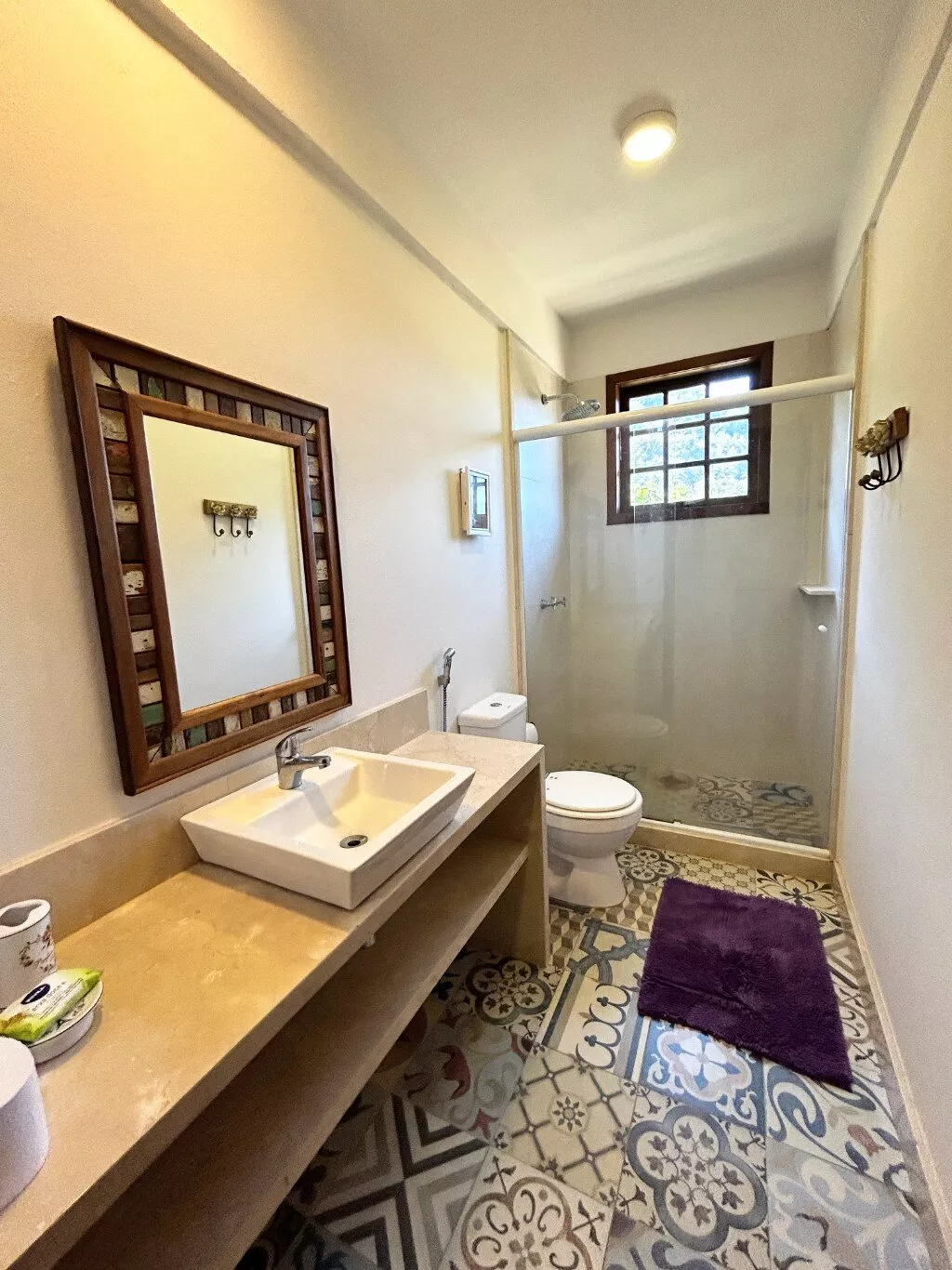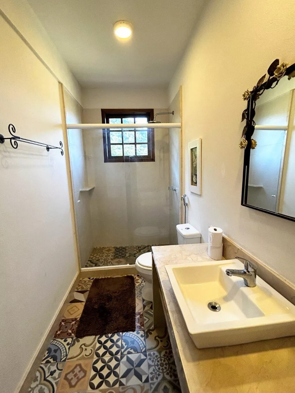 - Casa de hóspedes com amplo quarto e banheiro.